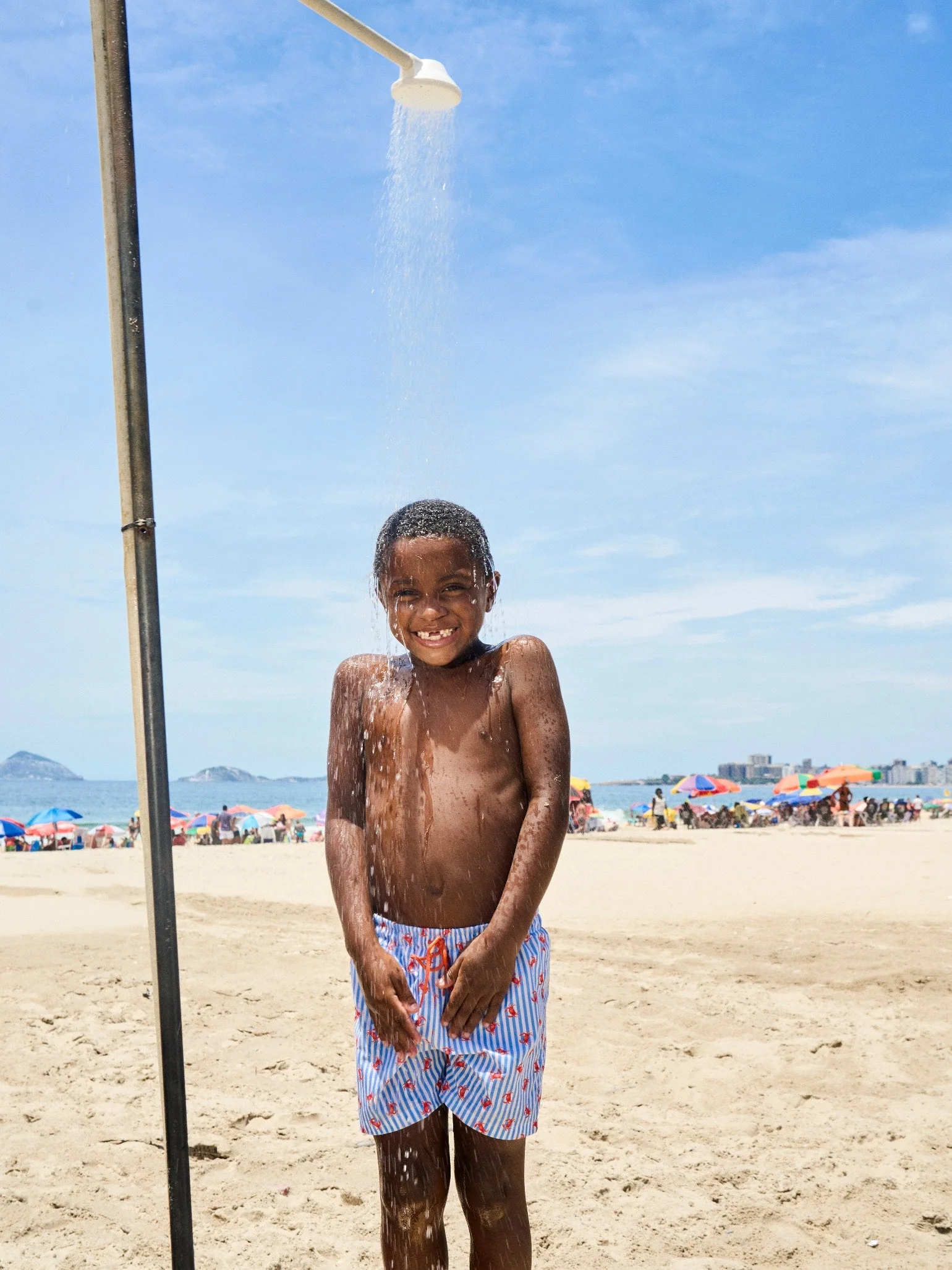 La Coqueta’s Bravo Boy Swim Shorts are a refined choice for stylish summer dressing. Crafted from quick-drying polyester, they feature a tailored short silhouette cut above the knee, ensuring both comfort and sophistication. A timeless blue and white stripe adds a nautical touch, featuring a sweet crab design while the contrasting coral drawstring on the elasticated waist offers an adjustable fit. Designed for effortless versatility, they transition seamlessly from poolside play to beachside lunches; simply style yours with a crisp linen shirt for an elevated yet relaxed warm-weather look.