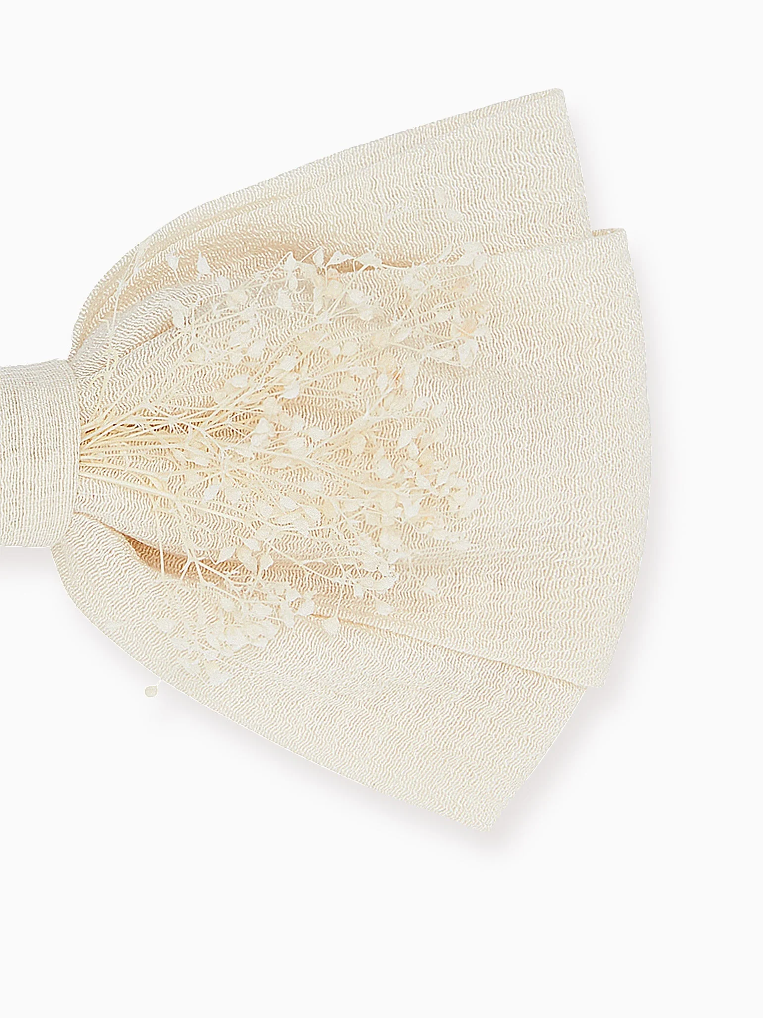 Elevate the big day with La Coqueta's Ivory Large Floral Bow Clip, hand-crafted in Spain at one of our family-owned ateliers. Delicate bunches of gypsophila have been woven into a hand-tied bow, with a concealed alligator clip to attach to hair. Perfect for special events and ceremonies, add a bohemian touch to those unmissable moments.