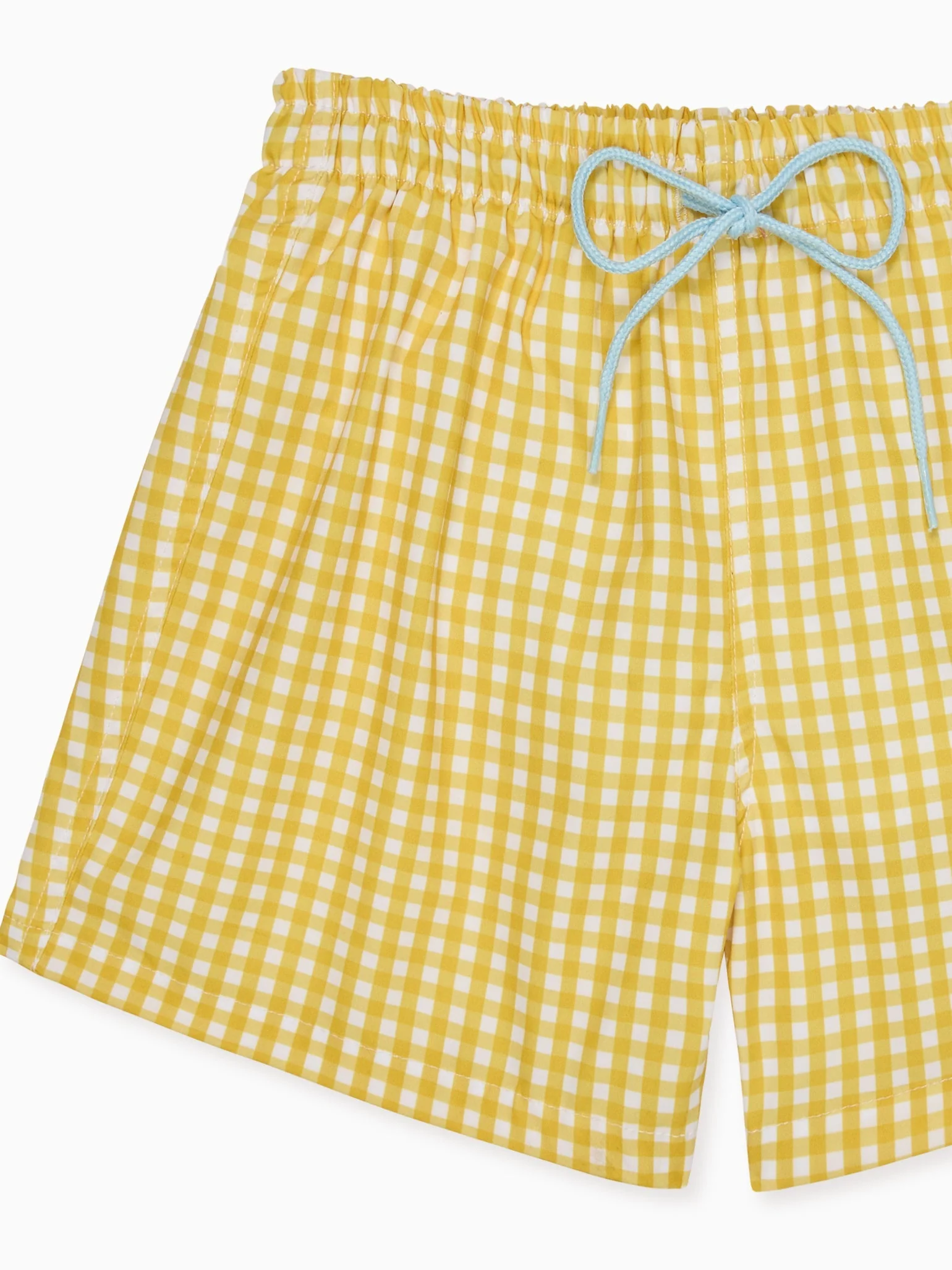 La Coqueta’s Bravo Boy Swim Shorts are a refined choice for stylish summer dressing. Crafted from quick-drying polyester, they feature a tailored short silhouette cut above the knee, ensuring both comfort and sophistication. A fun yellow gingham is paired with a contrasting light blue drawstring on the elasticated waist, offering an adjustable fit. Designed for effortless versatility, they transition seamlessly from poolside play to beachside lunches; simply style yours with a crisp linen shirt for an elevated yet relaxed warm-weather look.